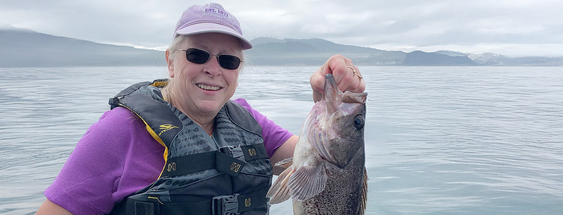 Photo by Dennis J. Rupp, Cara Rupp with her black rockfish.