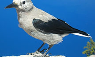 On his historic expedition with Meriwether Lewis, Captain William Clark, the bird's namesake, first mistook this species for a woodpecker undoubtedly because of its long, sharp beak. However, this most specialized member of the North American Crow family uses this apparatus to pry loose its favored seeds from unrelenting cones of several pines with which the nutcracker has a symbiotic relationship. The whitebark pine, in particular, is totally reliant on Clark's nutcrackers for seed dispersal and germination.