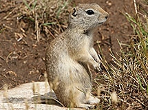 The Piute ground squirrel is the other of the two small gray ground squirrels without stripes or spots.